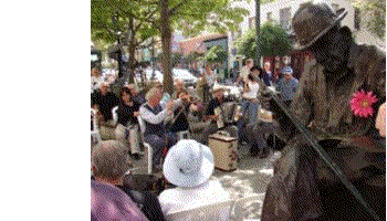 ridiculous as it sounds.... .....I just returned from the International Musical Saw Association's annual Saw Players Picnic in Santa Cruz, CA, where I witnessed not only the Saturday Jam Session (the "Saw In"), but assisted in the production of the World Championship (the "Saw Off"). |
