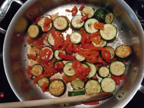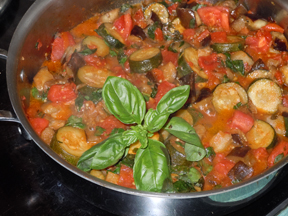 This applies to dishes with fresh tomatoes more than any other vegetable. Also to basil. Cooking with dried basil is like trying to have a conversation with a photo of someone who died decades ago - fairly unrewarding.** So, ratatouille: |