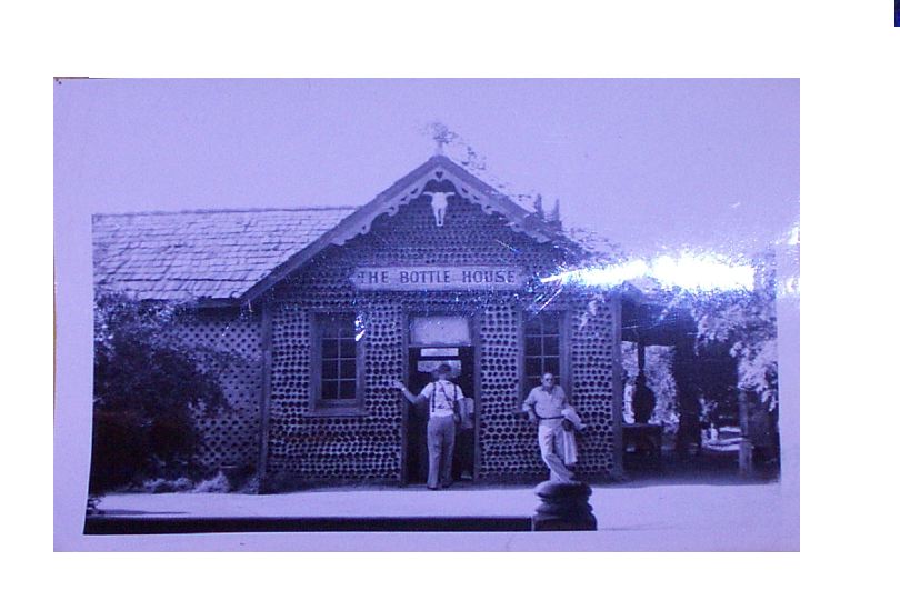 (How does this seem to come around so often?) Thinking about the possiblities for using materials that could withstand the elements (and would not force me to do the whole mess over again again in a few years) I realized I was staring at a pile of what is almost an inexhaustible resource around here: wine bottles.* This coincided with a blast of memories from my childhood: seeing the Bottle House at Knott's Berry Farm amusement park (a replica of one in Calico, CA), and being fascinated by it, and the Rhyolite Bottle House in Nevada (the real deal), some years later. So, today, with the able assistance of the staff and management of Trader Joe's and the generous and thirsty residents of Pinole, Ca (site of the nearest TJ's) we have begun to erect our own (somewhat blurry) vision of what a weather-proof wall looks like. The bottles are exclusively from the Charles Shaw brand of wine, commonly and affectionately known as "Two Buck Chuck," as it still blessedly sells for $1.98, and can actually be swallowed with out gagging! (Three Cheers for Fred Franzia, who we credit with reviving the cheap-but-drinkable-everyday-table-wine market.**) Nightside Studios' idea of 'Green' doesn't stop with the color of our monsters, no sirree! This project will eventually find its way onto a web page of its own, but, in the meantime, you can keep tabs on it right here on these virtual pages. More updates to follow!