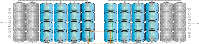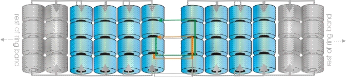 Add more rows of square stitch until the band fits around the finger that will wear the ring. (figure 9) Use square stitch to join the two ends of the band. (figure 10) Make a few half-hitch knots, sew in tails and trim. You've done it! |