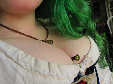 us her "Cleavage Gnome" 's periscope peering out from her Ren