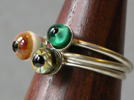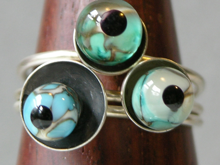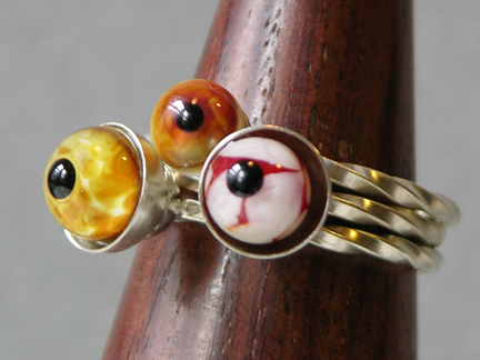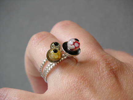 These beautiful stacking eye rings are from Tessa Rickard. Find her other fantastic stuff at her Etsy shop: Dolldisasterdesign | |||||