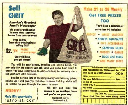 that touted "Sell Grit! Earn valuable prizes!" My grandmother even had a copy or two of it swimming around in her pile of Capper's Weekly * back issues(which she really liked for the jokes - they were better than the ones in PG&E Progress **, even!) But I recently took a gander at their online version and was at once dazzled and amused, but not altogether surprised, either. |