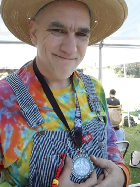 above, with medal) is 2015's World Champion. (no pressure, Tom....) Under sunny Roaring Camp skies, Spearance breezed thru the compulsory number Auld Lang Syne. Spearance's rendition of Yesterday, Moon River and Over The Rainbow wowed the judges, and cinched the crown. He has appeared at the Picnic many times throughout the years, and has served as MC, hiatus-filler and all-around good guy. |